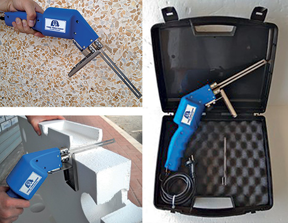 In valigetta. Per tagli, incassi, fori ciechi e passanti, tracce e scanalature su polistirolo e gommapiuma. 230V. Operativo in 15sec. Temperatura d'esercizio 500?. Morsetti a doppia scanalatura per utilizzo fili mm.0,8 o piattine mm.8x0,8 modulabili. Disgiuntore termico automatico in caso di surriscaldamento. In dotazione: lama mm.150, supporto acciaio inox regol. 0-90? per tagli max mm.150.