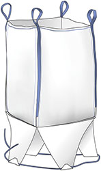 Sacconi in polipropilene bianco, categoria ONU 13H3/Y per rifiuti. I pittogrammi "R" ed "ADR9", applicati come etichette, sono staccabili, rendendo il saccone flessibile per ogni utilizzo. La fodera garantisce l'impermeabilit? in caso di materiali umidi. Fondo piatto chiuso. Chiusura superiore a caramella. 4 bretelle di sollevamento con asola da cm.30. Portata Kg.1000. Made in Italy.