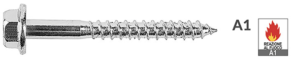 Viti a legno testa esagonale con falsa rondella. In acciaio zincato. Certificate CE - EN 14592:2008+A1:2012. Reazione al fuoco A1.