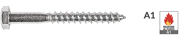 Viti a legno testa esagonale DIN 571. In acciaio zincato. Certificate CE - EN 14592:2008+A1:2012. Reazione al fuoco A1.